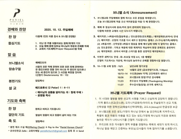 2025년 10월 12일 주보 페이지 정보 작성자 매릴랜드브니엘교회 댓글 0건 조회 25회 작성일 25-10-13 09:11 목록 본문 2025년 10월 12일 주보 다음글2025년 10월 5일 주보 25.10.05 댓글 0 댓글목록 등록된 댓글이 없습니다. 목록
