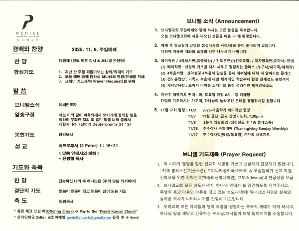 2025년 11월 9일 주보 페이지 정보 작성자 매릴랜드브니엘교회 댓글 0건 조회 85회 작성일 25-11-10 07:00 목록 본문 2025년 11월 9일 주보 이전글2025년 11월 16일 주보 25.11.17 다음글2025년 11월 2일 주보 25.11.02 댓글 0 댓글목록 등록된 댓글이 없습니다. 목록